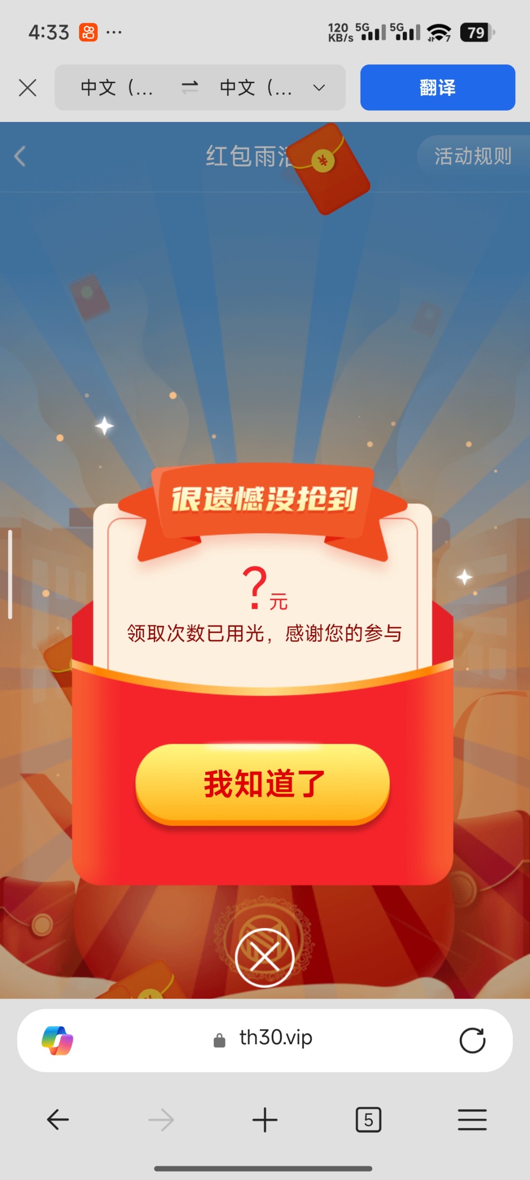 以前玩过的应该都能抢 我抢了14块 https://www.th30.vip/mobile21/index.jsp 进去后点下面的优惠 然后点右上角红包雨就可以抢了