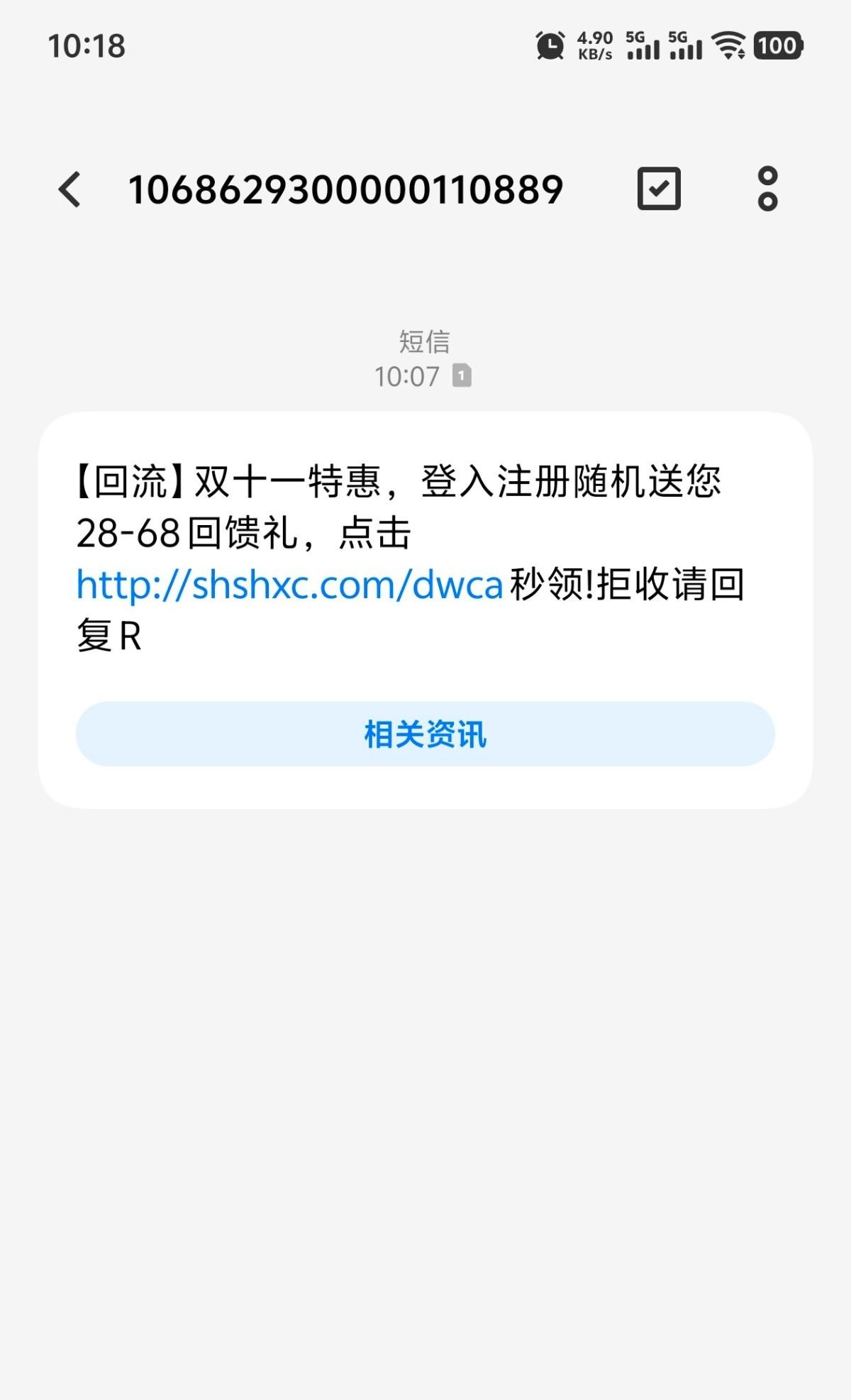 卧槽,以短信我收到过几百次收一次删除一次,我以为啥呢不敢点击,原来是赌博网站。。。。。