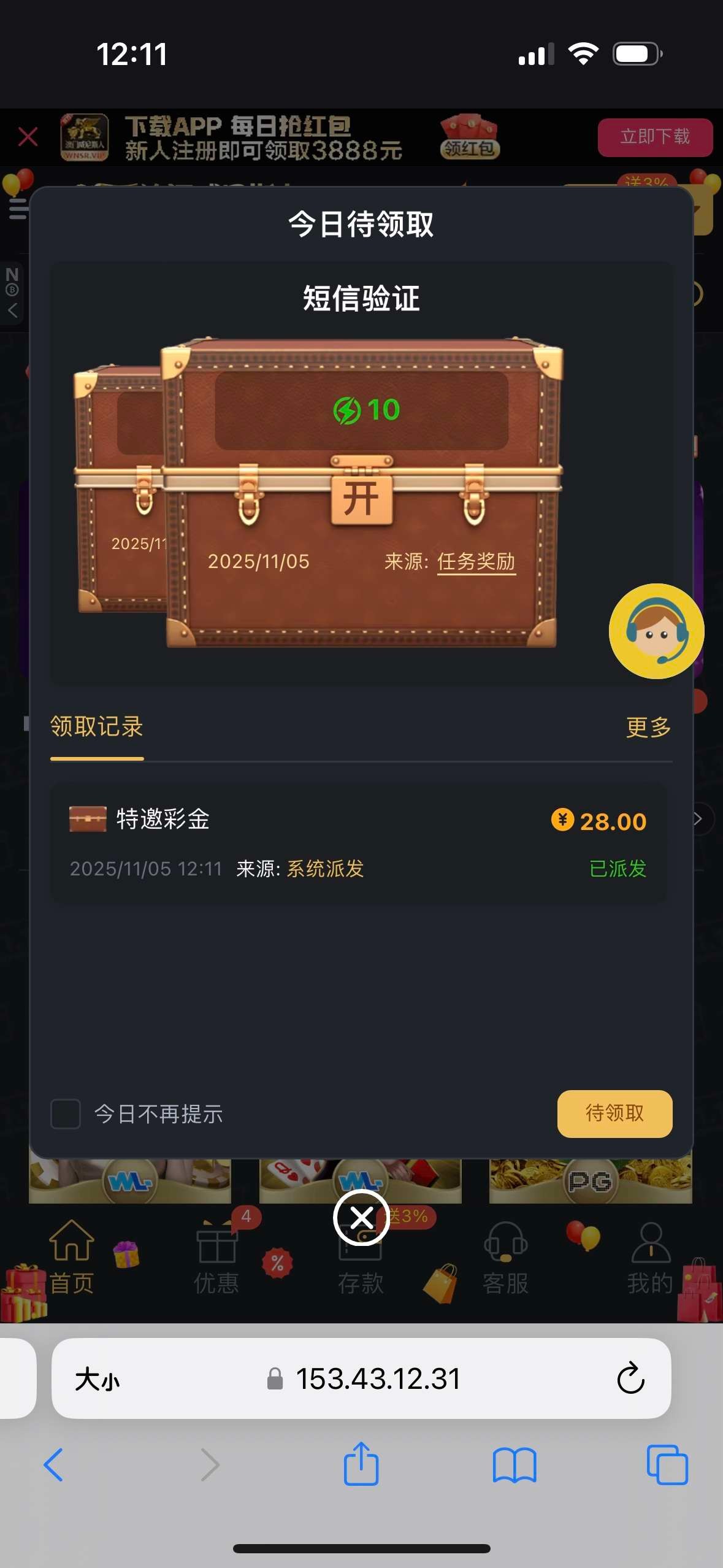 电话打来的自动送做是特邀的话10~30分钟左右自动送,领不到就无视